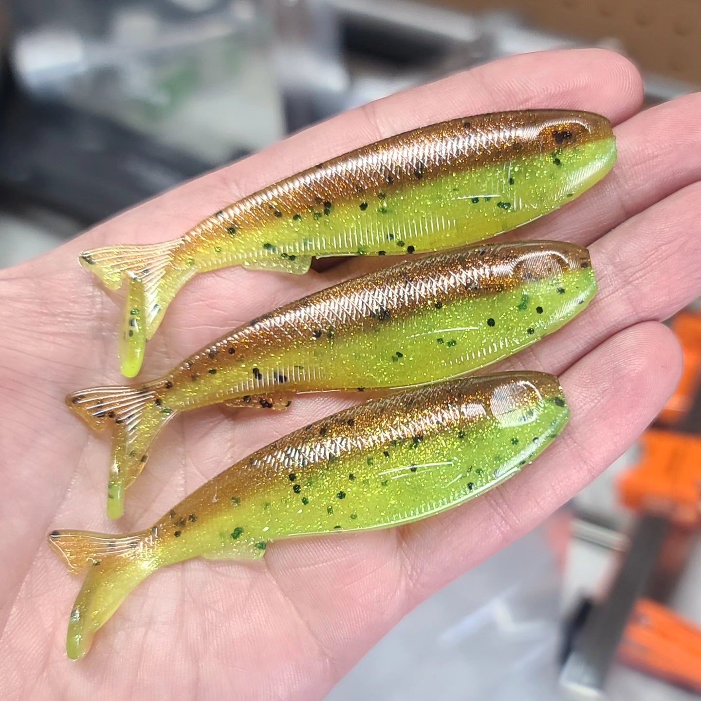 3.3" slim swimbait. Recommend rigging with a 3/0 swimbait jig head (No Hook Slot version) or on a weighted swimbait hook (Hook Slot version) (terminal tackle not included).